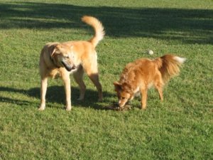 Even though Aggie picked up some stink, she at least showed a bit of discretion by backing off from an impossible situation as soon as she could. Tipper, on the other hand, having no idea what she was dealing with, threw herself into the fray with unwavering determination. The thing is, she got hosed for nothing. If the pups had simply left the skunk alone, or contented themselves with barking at it, it would have left quietly. But no, they had to corner the harmless little thing, and we all had to deal with the consequences.