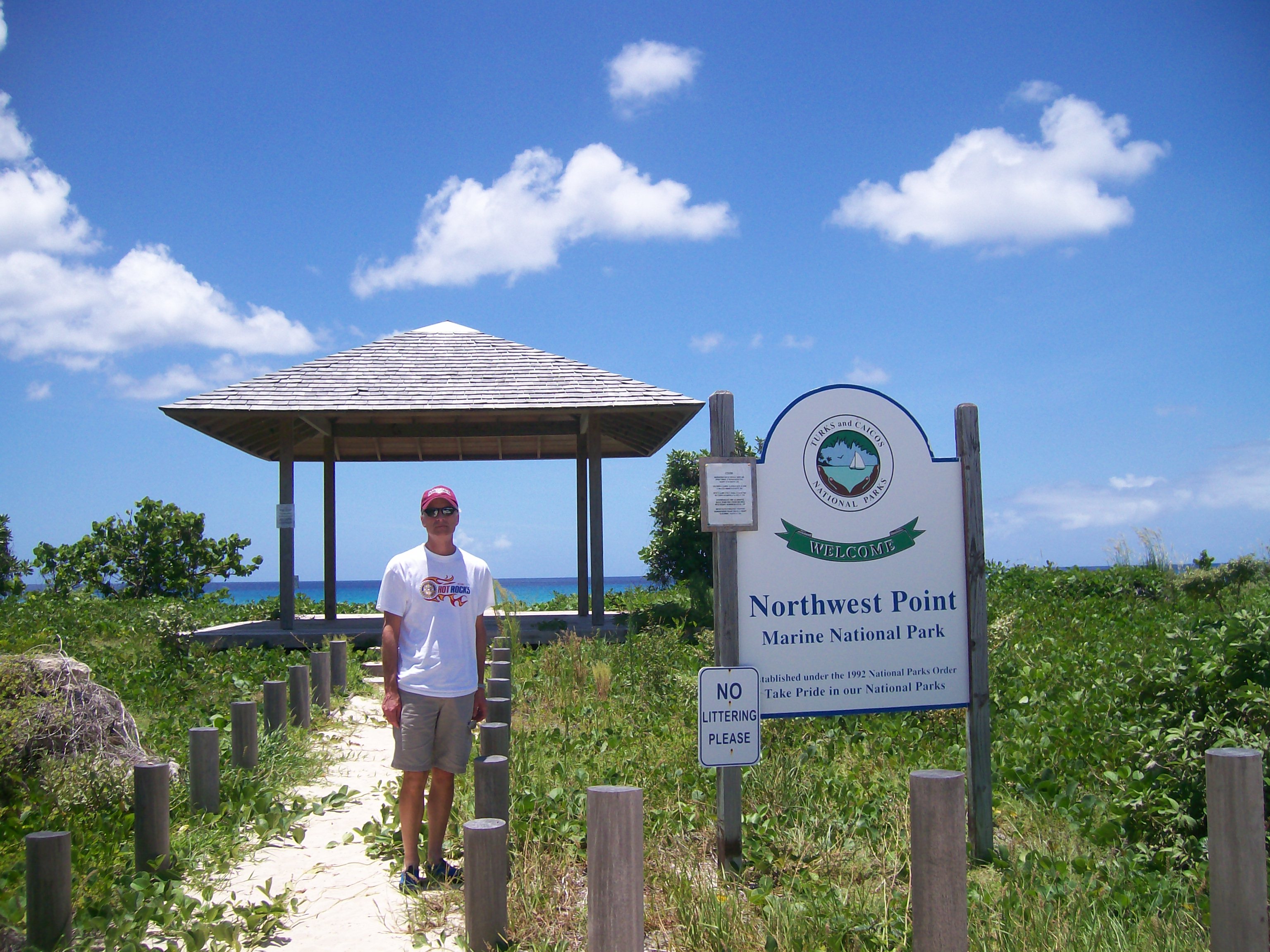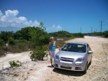 Then the spirit of adventure kicked in. We had rented the car so we could get around without waiting for taxis and such. The Turks and Caicos Islands are British territory, so Brent had to get used to driving on the left. (You’re not supposed to notice that I didn’t say we had to get used to it. This was because I flat chickened out and refused to drive.) He did great; only a couple of near-misses on the first day. Anyway, as we gained confidence and studied our map of the island, we talked about visiting “Northwest Point Marine National Park” out on the west edge of Providenciales. It was several miles out, at the end of Malcolm’s Road, which the map showed was unpaved.
