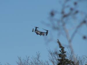 A small regional airport lies about three miles from us. I enjoy hearing little single-engine planes taking off or landing. Some of the planes that drag advertising banners use that airport. Once or twice a year, we are treated to a stunt airshow — at least, the parts of the show that are visible above the treetops from three miles away. One time an Osprey orbited around for two hours. I got NOTHING done that morning.