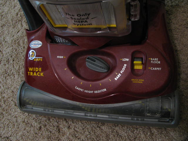 I was barefoot by this time, so I had to slip one foot into a shoe while I jumped on the handle latch until I could get it released. Finally I turned on the vacuum, which proceeded to fling dozens of tiny dried mud pellets at my bare toes. Yep, the brush switch had toggled itself back to Carpet.