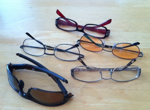 Glasses abound at our house now: the old pair that stays in my car for emergencies, spare reading glasses in every room plus the garage, even an old pair of single-vision sunglasses that I could use in a pinch for driving. The lens population at our house may outnumber humans by twenty to one, but at least I can read my own handwriting.