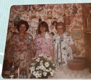 Speaking of the ’70s, I’ve saved the best for last. This photo was taken at a shower hosted by Brent’s mother’s best friend, Madalyn. Oh. My. Word. Could there be any more flowers in that picture?