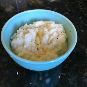 I’m sure you’ve heard of substituting mashed cooked cauliflower for mashed potatoes. You can, in fact, cook cauliflower florets until tender and mash them with butter and milk. The resulting gloop is similar in color to mashed potatoes.