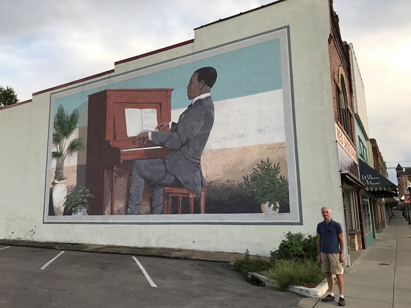 Before we headed back to Texas, I took Brent a few blocks north of the hotel to visit the site of the night club where Scott Joplin got his start. This mural is across the street. On my visit in 2009, it was badly faded. Looks as if someone has touched it up!