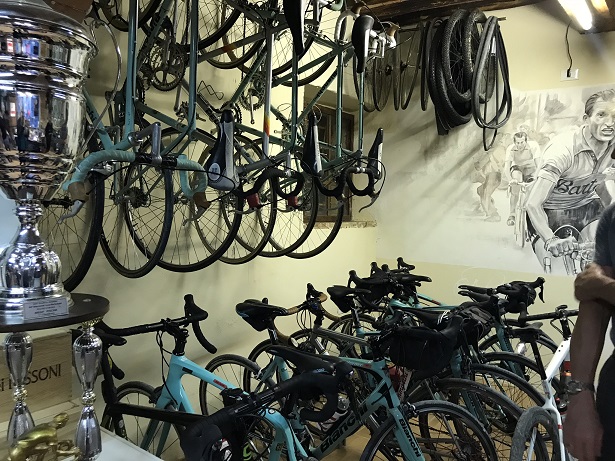 Here’s the bike garage at Il Mollinello, our guide Sandro’s home / B&B / 14th-century gristmill. First, let me say up front that this jaw-dropping wonder world of bikes absolutely could beat up the bike garage at our house.