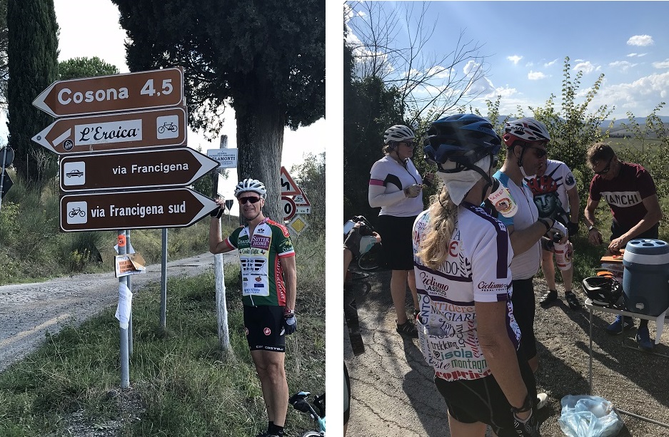 Some of our routes coincided with the route of L’Eroica, the gravel ride that was to be the pinnacle of the tour. Area road signs include permanent route markers.