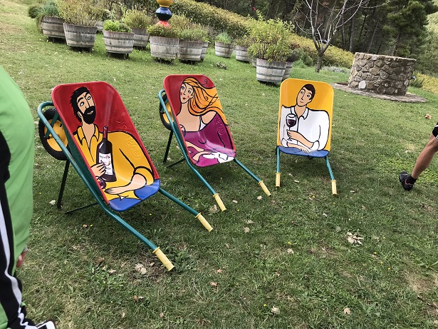After the castle, we rode downhill (yaaay!) to a unique vineyard for a tour and lunch. Here’s what happens when a family of artists are turned loose in a vineyard…