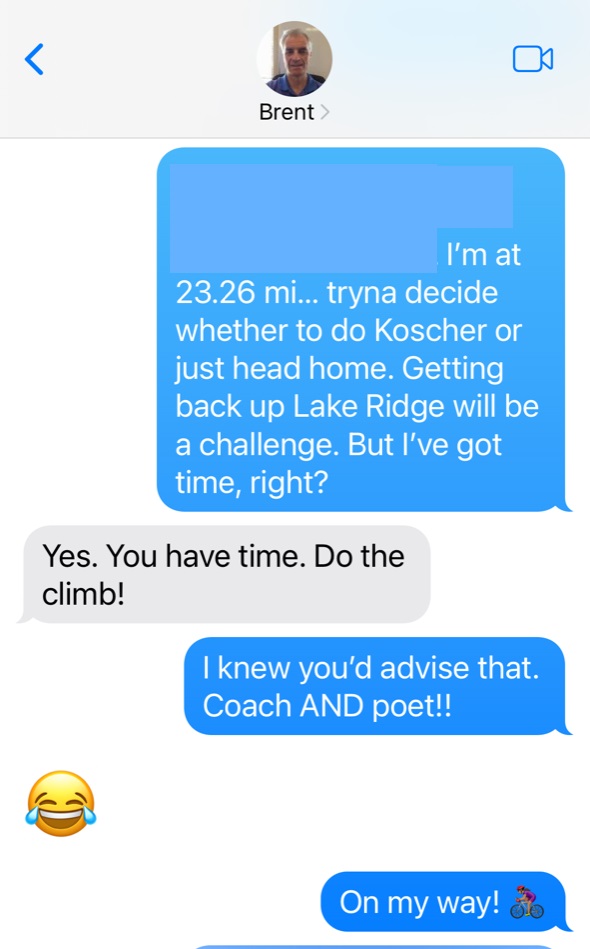 Everything went fine… but it seemed to take a lonnnng time to get to Cedar Hill. Somewhere along the way, I remembered that the “east-first” route clocks over 30 miles, not 20.